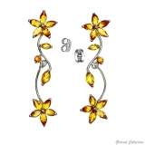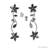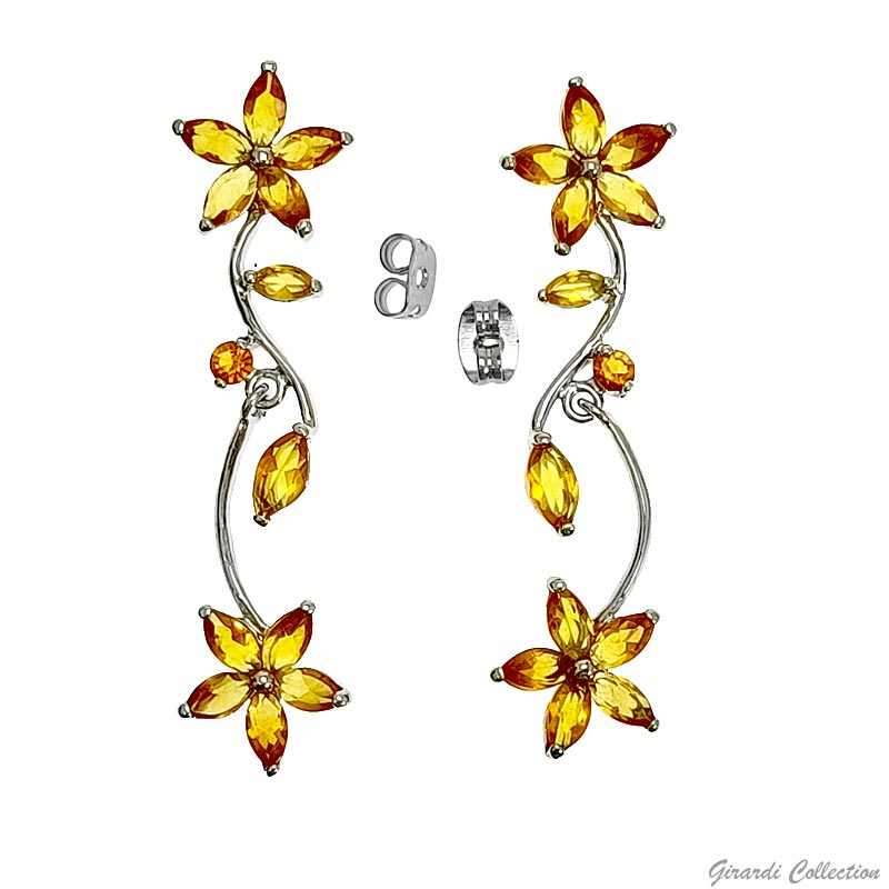 Bellissimi Orecchini a lobo con Rami Pendenti e Zirconi disposti a Fiori. Nickel Free.